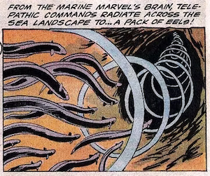 Concentric circles are used in comics to visually represent waves of telepathic energy, and are commonly associated with telepathic Marvel Comics characters like Professor X of the X-Men. In DC Comics, this effect has been used since at least 1965, as a CBR article about Aquaman explains[2]. [Pictured is a panel from Aquaman #20, Mar./Apr. 1965]. Concentric circles have also been used as a way to visually represent Buddy’s powers since Animal Man #1.