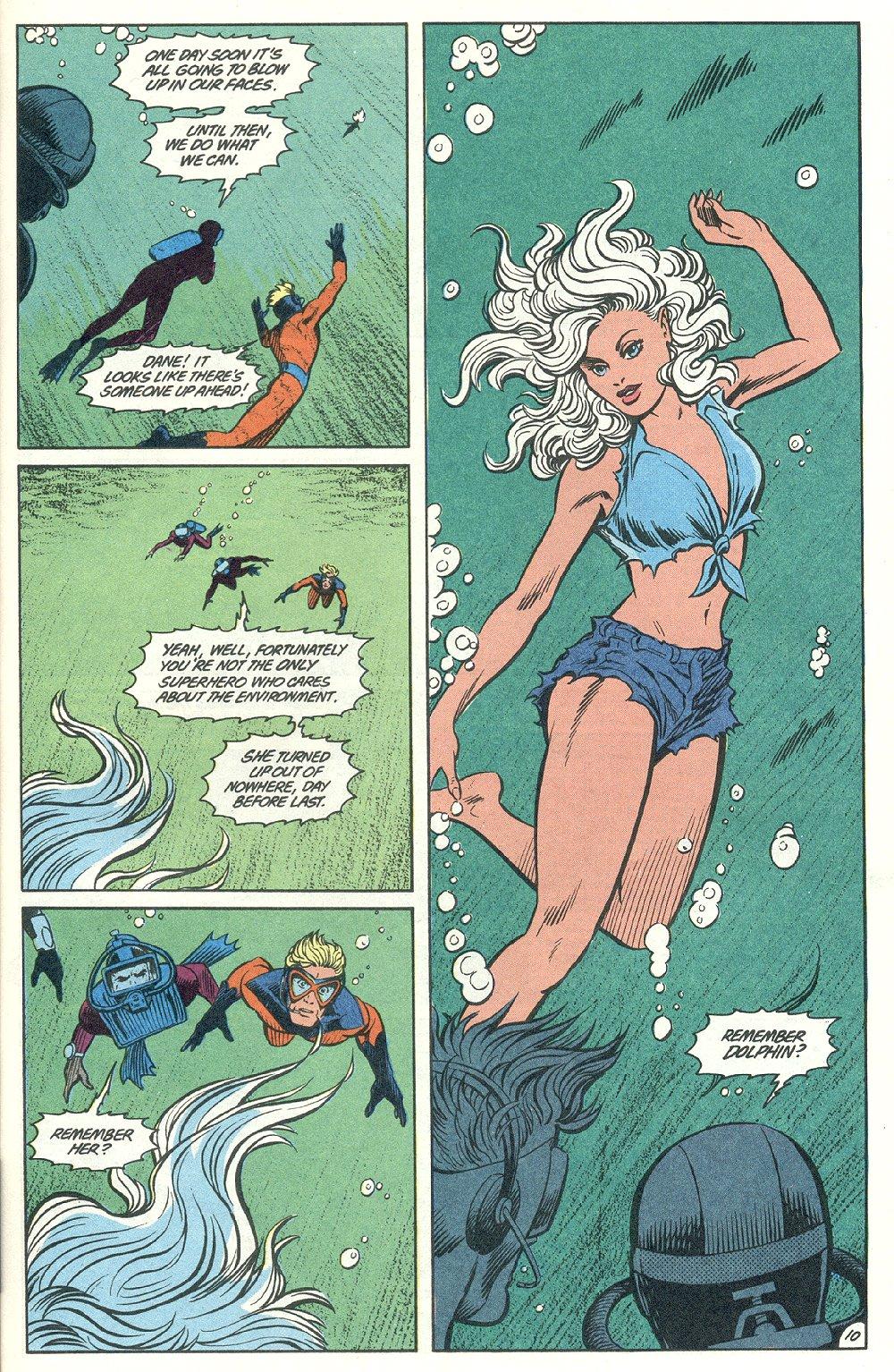 As this issue isn’t cover-dated, it is difficult to ascertain where this appearance fits chronologically. This issue might occur before Captain Atom loses his powers, which would place it before Justice League Europe #6 (Sept. 1989). However, many chronologies, as well as the ‘Justice League International Omnibus’ books, place this issue after JLE #6. The Annual must then also take place after Captain Atom #34 (Oct. 1989), when Atom’s powers begin to return, but before Fire wears her new costume in Justice League America #31 (also Oct. 1989).