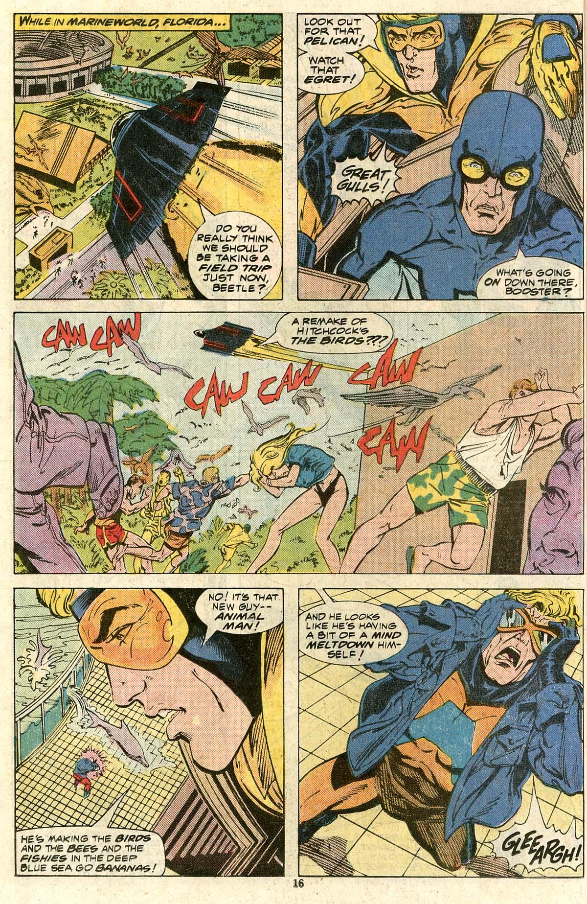 Animal Man appears at a JLE meeting at the beginning of the issue, and heads to Global Guardians headquarters with the rest of the League after learning about the fight.